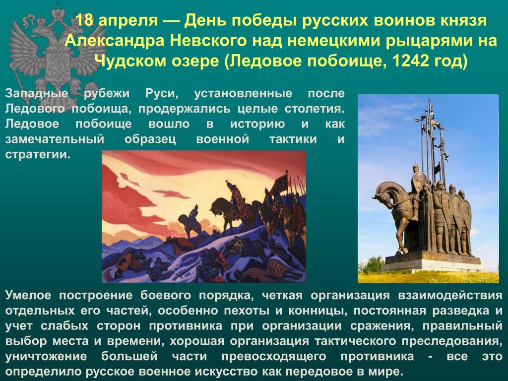 День победы русских воинов князя Александра Невского над немецкими рыцарями на Чудском озере