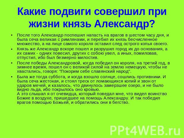 Жизнь и подвиги Александра Невского. 3 подвига Александра Невского