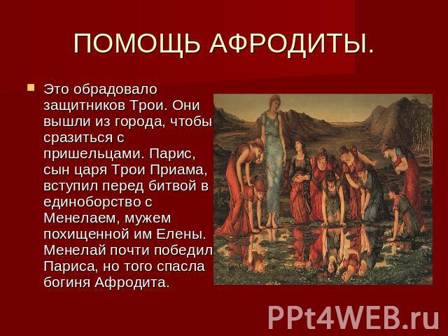 Но эти более беззаботные или красочные эпизоды вскоре уступают место одному из самых смертельно серьезных столкновений поэмы — дуэли между Гектором и Ахиллесом. Гомер использует несколько приемов, в том числе пророчества и иронию, чтобы создать тяжелое чувство пафоса. Речь Приама, сравнивающая славную смерть героя с унизительной смертью старика в рухнувшем городе, кажется особенно душераздирающей, если мы знаем, как знали гомеровские слушатели, что сам Приам вскоре встретит ту самую смерть, которую он описывает, среди руины Трои. Когда Андромаха оплакивает жалкую жизнь, которую Астианаксу придется вынести без отца, острое чувство иронии усиливает трагический эффект ее слов: Астианакс лишь недолго потерпит эту безотцовскую жизнь, так как он умирает вскоре после падения Трои.