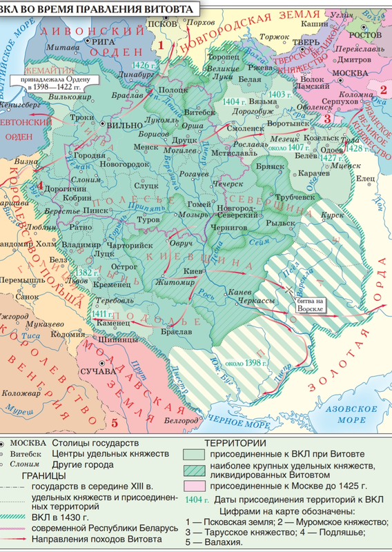 Все эти союзы и завоевания превратили Великое княжество Литовское в крупнейшее государство Европы того исторического периода. Но одновременно в северо-восточных землях прежнего Древнерусского государства шло возвышение Великого Московского княжества.