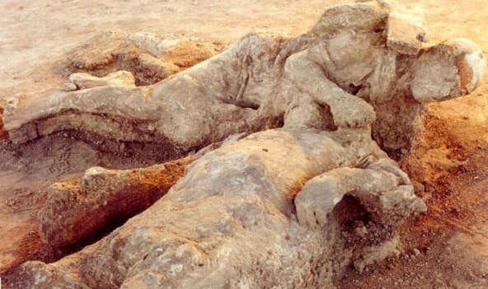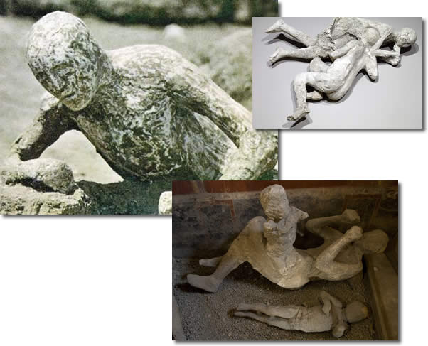 Органические останки погибших с течением времени исчезли, оставив после себя в слоях вулканических продуктов лишь пустоту и кости. То же самое произошло с деревянными и текстильными предметами быта. Во второй половине XIX века управляющий Помпеями археолог Джузеппе Фиорелли предложил эти пустоты при раскопках не разрушать, а предварительно заливать гипсом, чтобы получить объемную отливку истлевшего предмета или тела.