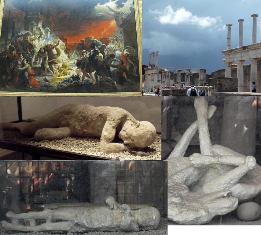 Как мы знаем, в Помпеях и окрестностях открыты останки чуть менее двух тысяч жертв извержения Везувия 79 года. Люди погибали на улицах, в домах, садах, на дорогах уже за городскими стенами. Чем раньше помпеец покидал город, тем больше у него было шансов выжить. Однако не все понимали грозящую Помпеям опасность, поэтому рассчитывали отсидеться в городе, спрятавшись в своих (или чужих) домах.