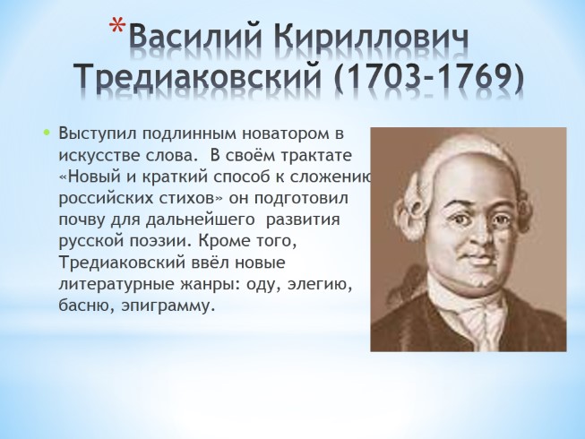 >>> ПОДПИСЬ: ТРЕДИАКОВСКИЙ Василий Кириллович — русский поэт, заложивший основы классической русской литературы