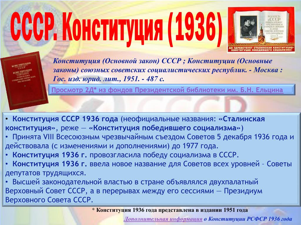 Союза», которая стала известна как «Сталинская конституция».