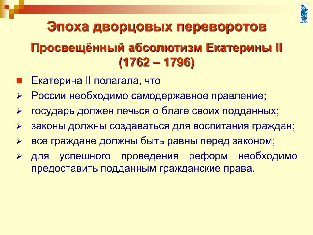 Урок 26. просвещенный абсолютизм екатерины великой — История — 8 класс