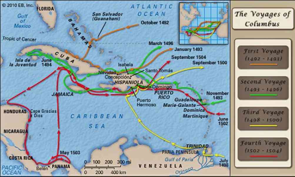 Христофор Колумб — что открыл, карта и маршрут путешествия Христофора Колумба