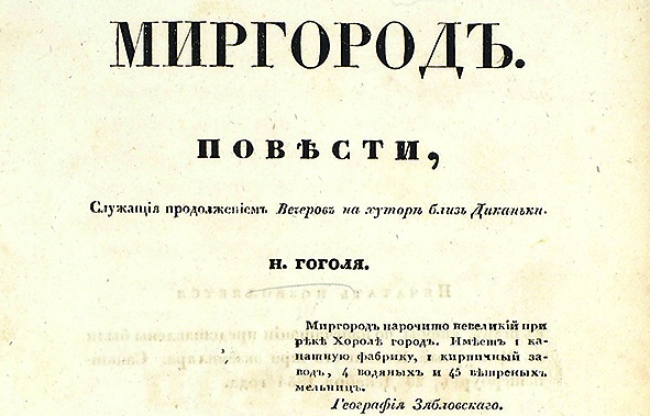 Кажется, обе эти тенденции проявились в цикле «Миргород», замышленном Гоголем вначале как продолжение «Вечеров». Собственно, одна из повестей «Миргорода» – «Повесть о том, как поссорился Иван Иванович с Иваном Никифоровичем» была уже ранее опубликована во второй книге альманаха «Новоселье» с подзаголовком «Одна из неизданных былей Пасичника рудаго Панька» (так в оригинале) и с датой «1831» (вспомним также упоминание в повести персонажей-рассказчиков «Вечеров» – Фомы Григорьевича и Макара Назаровича). Также и на обложке «Миргорода» стоял первоначально подзаголовок: «Повести, служащие продолжением «Вечеров на хуторе близь Диканьки».