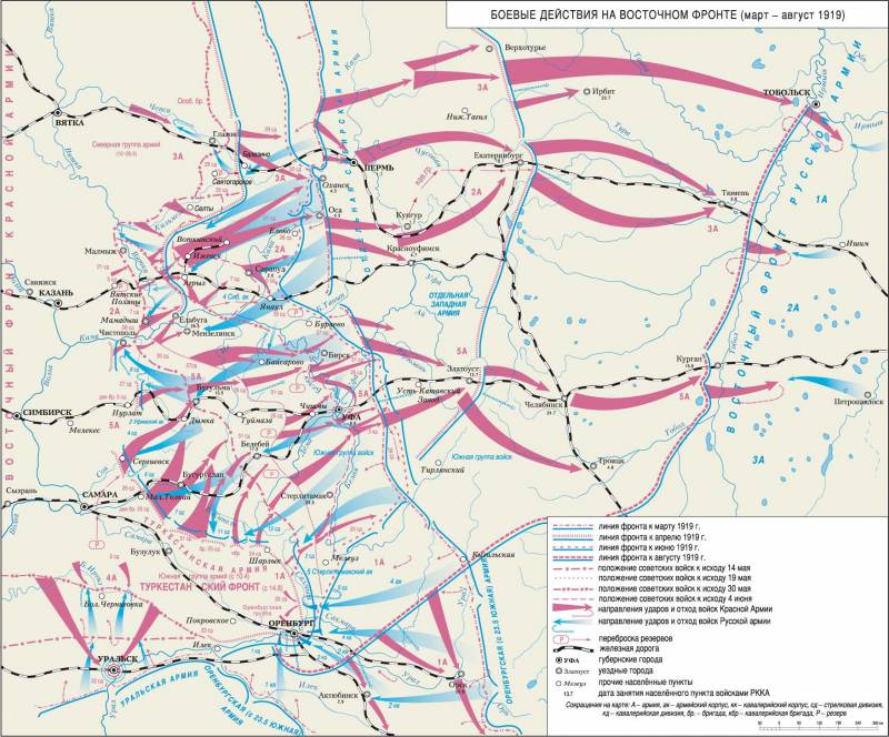 Западная и Сибирская армии белых под давлением усиленных резервами из центра и с других направлений войск Восточного фронта потеряли с мая по середину июля почти всю территорию, занятую в ходе весеннего наступления, и важнейшие промышленные центры: Пермь, Ижевск, Златоуст и Екатеринбург, где находились крупные военные заводы.
