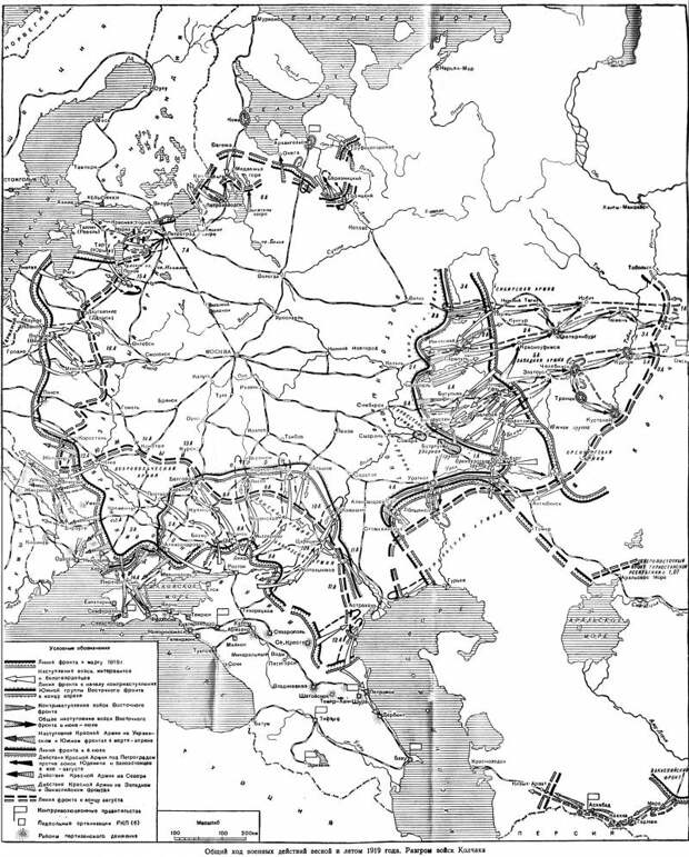 Весной 1919 г. был задуман объединенный поход Колчака-Деникина-Юденича против Советской России. Главный удар должен был нанести Колчак, с которым Деникин надеялся соединиться в Саратове для совместного наступления на Москву с востока. Юденич должен был нанести вспомогательный удар на Петроград.