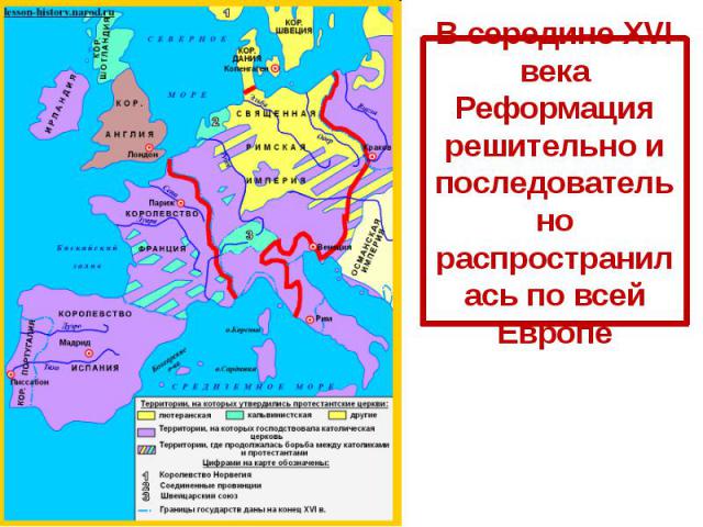 В 1520-1560 годах волна Реформации захлестнула Европу. Из Швейцарии учение Кальвина проникло во Францию, где кальвинистов называли гугенотами (от нем. Eigenosse — «союзник»). По душе пришлось это учение и жителям торговоремесленных городов Нидерландов. Учение Лютера активно распространялось в австрийских и венгерских землях, на территории Польши и Литвы и даже в немецких духовно-рыцарских орденах Прибалтики.