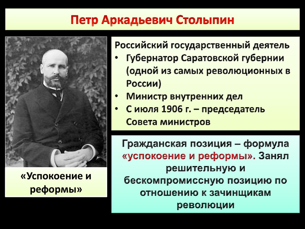 Первая русская революция показала, что страна столкнулась с большими проблемами, в частности, в аграрной и законодательной сферах. Это было время, когда на политической сцене появился сильный и решительный премьер-министр Петр Столыпин.