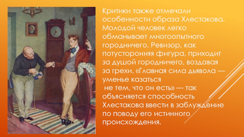 ревизор. На самом деле это не что иное, как г. Хлестаков, маленький петербургский чиновник, из числа тех,