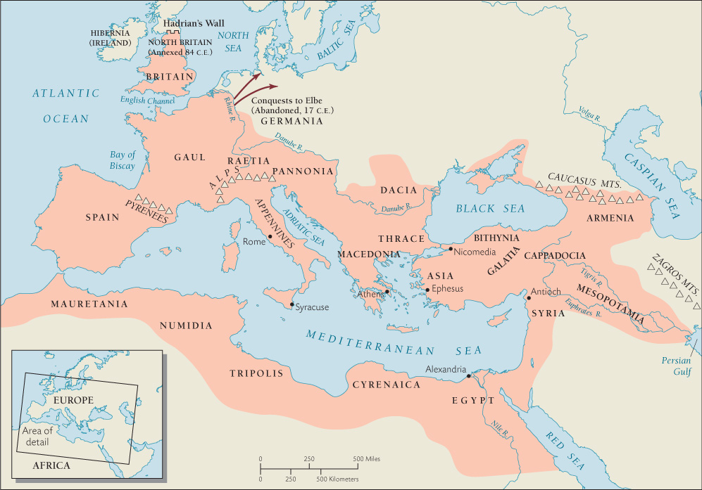 Попросите учащихся определить эти особенности на карте Римской империи.