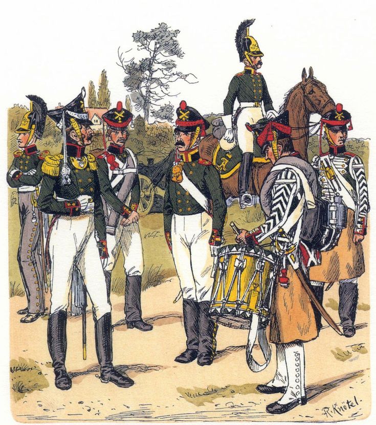 В XIX веке существовало несколько разновидностей пехотных войск. Основу сухопутной армии составляла линейная пехота, или, как ее называли в России до 1811 года, мушкетерская. Она должна была вести бой в сомкнутом строю, вооруженная гладкоствольными дульно-зарядными ружьями – фузеями. Существовала также и легкая пехота, которая в Российской империи была представлена егерями. Она вела действия в рассыпном строю и была оснащена лучшим стрелковым оружием. Тяжелая пехота – гренадеры – изначально включала в себя специально отобранных солдат, обученных метанию гранат.