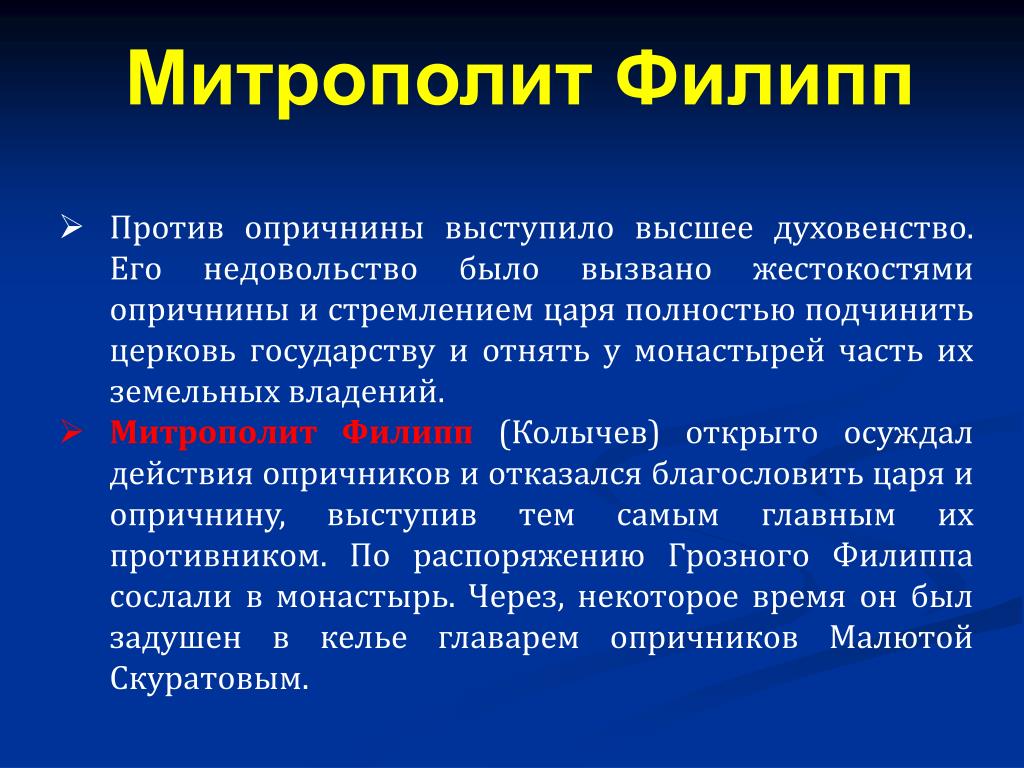 Русский митрополит, выступивший против введения Иваном Грозным опричнины: