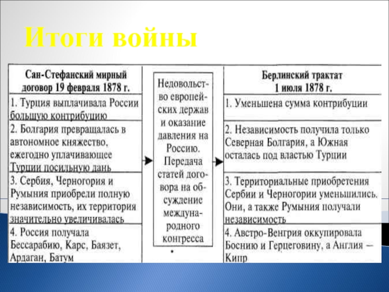 Сербия, Черногория, Румыния, а в будущем и Болгария были освобождены от 500-летнего турецкого ига и получили независимость;
