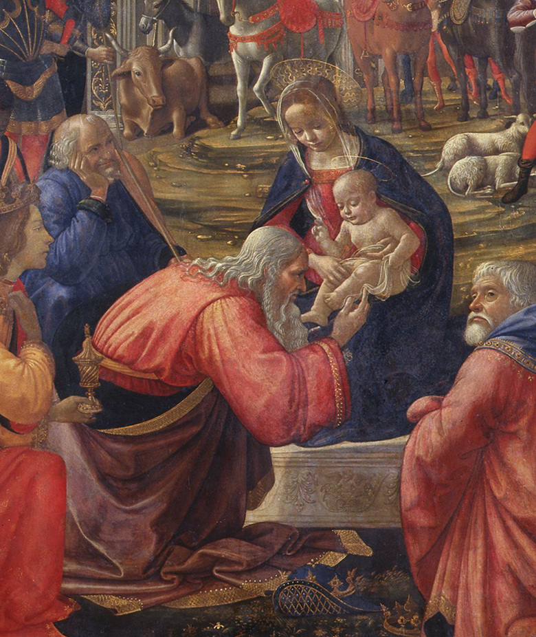 Мотив Поклонение волхвов был необычным для флорентийских алтарных сцен до 15 века. Одно из первых представлений Поклонения волхвов находится на алтаре Строцци Джентиле да Фабиано, датируемом 1423 годом. Но 15 век был его золотым веком, вероятно, из-за множества братств во Флоренции.