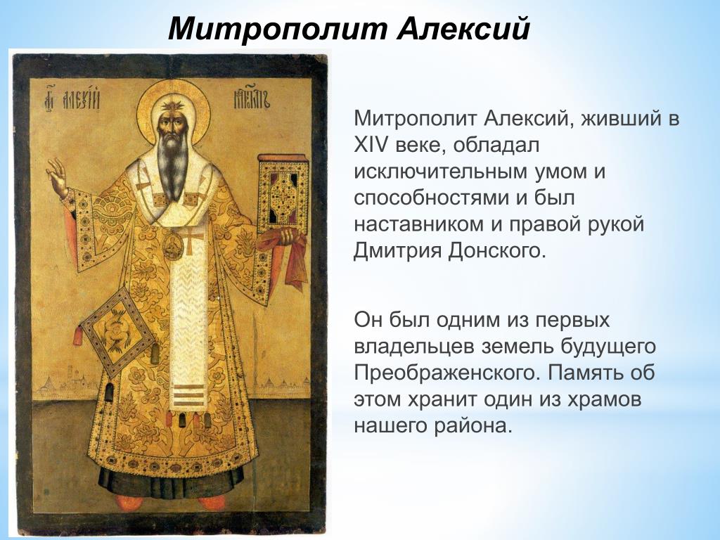 Святитель Алексий не стал настаивать, провидя великое значение для Русской Церкви преподобного Сергия как «игумена всей Русской земли».