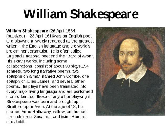 Уильям Шекспир Биография описывает жизнь