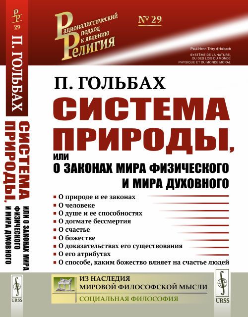 Крайнее материалистическое и атеистическое течение философии Просвещения нашло себе полное и окончательное выражение в знаменитой книге «Система природы» («Système de la nature») – сочинении, вышедшем анонимно, автором которого впоследствии оказался друг Дидро и всех энциклопедистов, барон Гольбах, писавший свое произведение, как кажется, в сотрудничестве с некоторыми приятелями (если Дидро и был причастен этой работе, то во всяком случае не со стороны литературной, так как она написана превосходным стилем). Тот заключительный аккорд отрицательно-рационалистических доктрин, которым является «Система природы» Гольбаха, был подготовлен длинным рядом прелюдий, намечавших отдельные его моменты. По этому поводу историк материализма Ланге говорит: