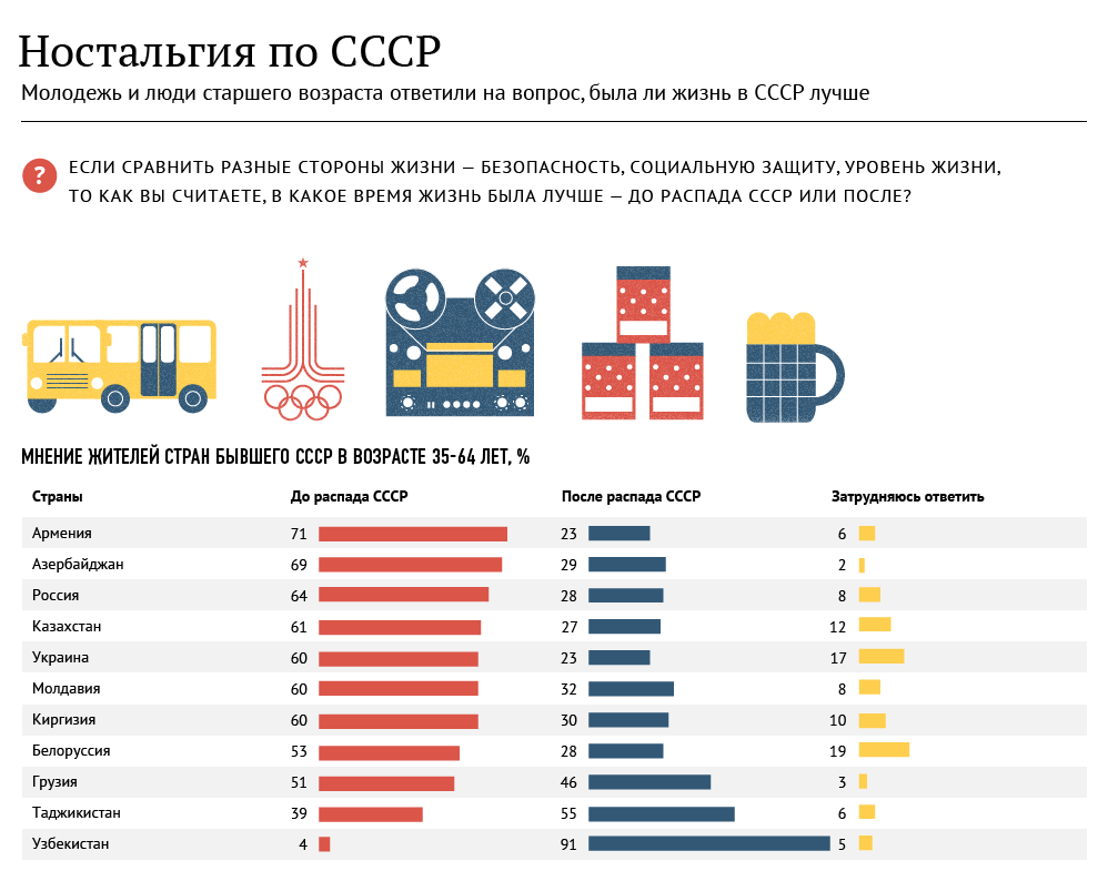 Ностальгия по советскому прошлому — не только украинская проблема; от этого страдают и другие страны, некогда входившие в состав этой тоталитарной неоимперии. Он держится на двух основных китах: воспоминаниях о молодости, когда все казалось лучше, и отголоски мощной советской пропаганды, выдававшей желаемое за действительное.