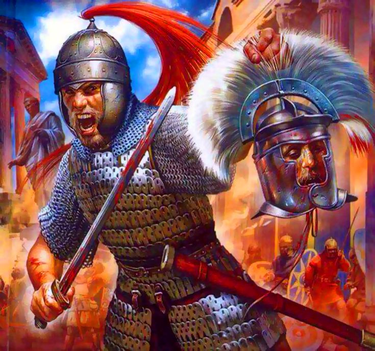 Гунны между тем обрушились на везеготов, устроив им настоящую бойню. «Побежденные скифы (везеготы. — С. Ц.) были истреблены гуннами и большинство их погибло, — пишет современник этих событий Евнапий, — причем не было предела жестокости при их избиении». В 376 г. десятки тысяч спасающихся от нашествия везеготских семейств появились на берегу Дуная, умоляя римские власти позволить им переправиться и поселиться во Фракии. За ними шли остроготы, слыша за своей спиной топот и ржание гуннских лошадей. Император Валент согласился принять везеготов, намереваясь использовать их для пограничной службы на дунайской оборонительной линии. Однако переправа такого огромного количества людей заняла много времени; подвоз припасов не был организован должным образом, и среди везеготов разразился голод.