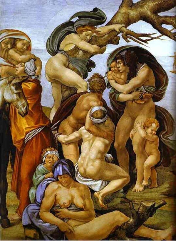 Несмотря на свой раздражительный характер, Микеланджело почитал других и хотел, чтобы его любили. Таким образом, во всех своих работах он сосредоточил свою энергию на понимании формы человеческой фигуры. Микеланджело считал, что человеческое тело — это прекрасное существо, которое должно быть обнаженным или носить только простые одежды.