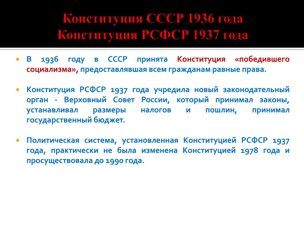 Статья 81. Законы РСФСР обязательны и имеют одинаковую силу на территории всех автономных республик. В случае расхождения закона автономной республики с законом РСФСР действует закон РСФСР. | |