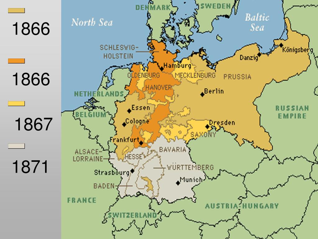 Через пару лет началась война с Австрией, в результате которой были присоединены несколько германских княжеств: королевство Ганновер, Гессен-Кассель, герцогство Нассау и город Франкфурт.