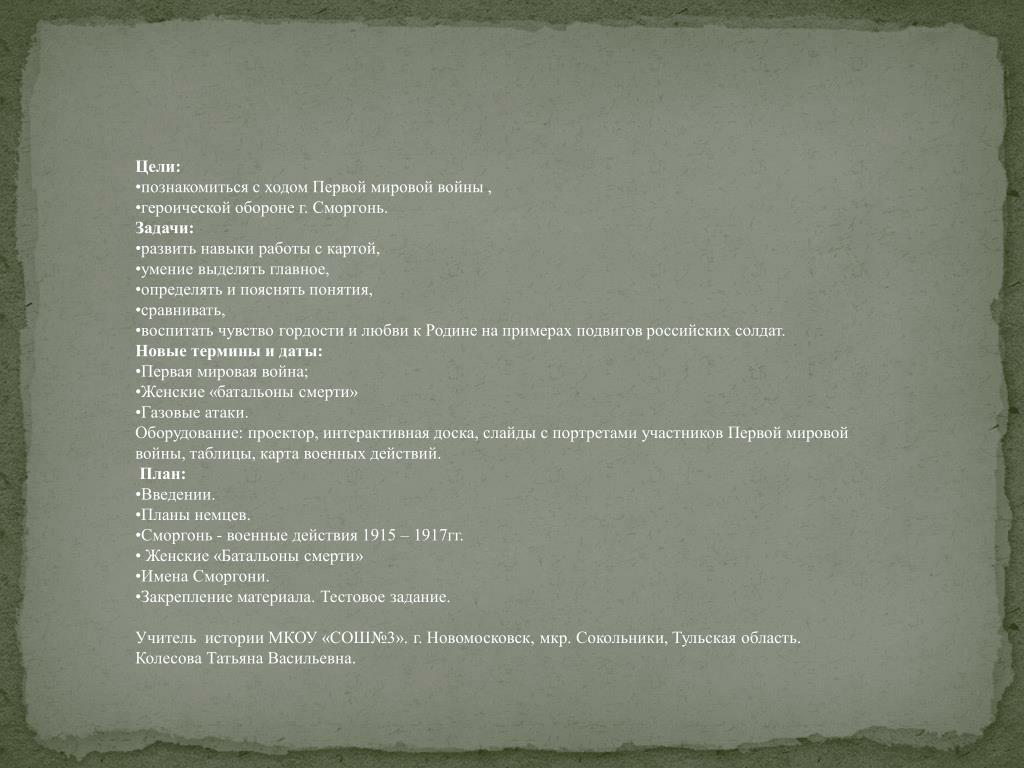 Обучающая: раскрыть причины, характер Первой мировой войны, ознакомиться с целями стран-участниц войны и ходом военных действий на Восточном фронте на начальном этапе войны через самостоятельную работу студентов, опираясь на материал учебника и другие источники.