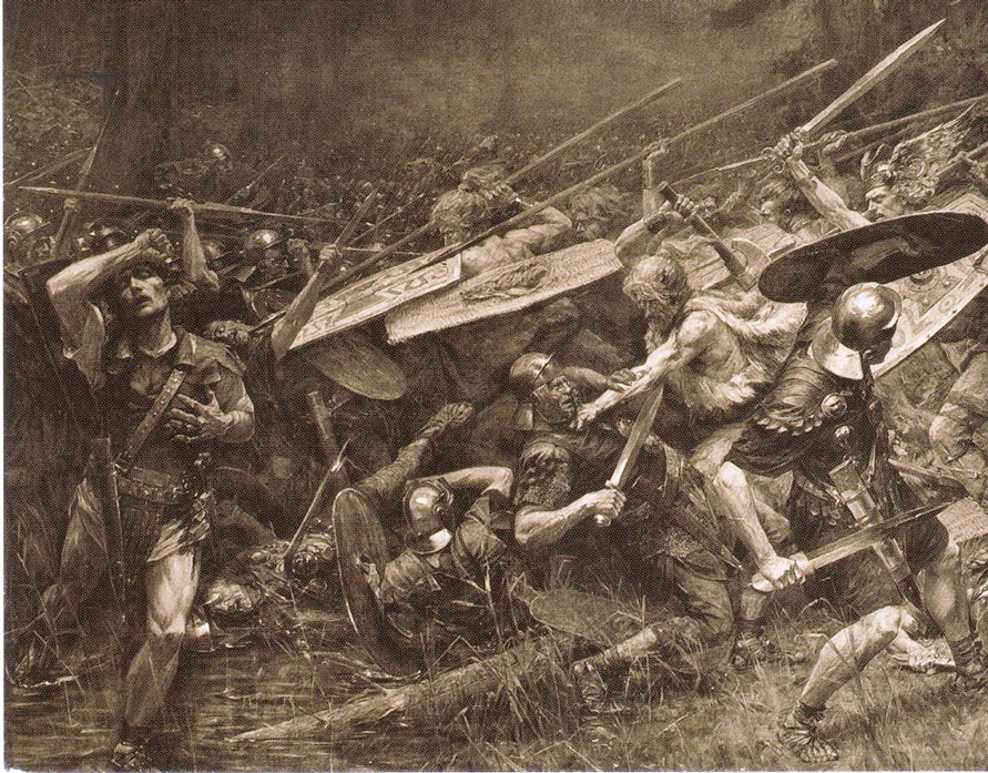 Атака германцев в Тевтобургском лесу. С картины художника А.Коха (1909 г.)