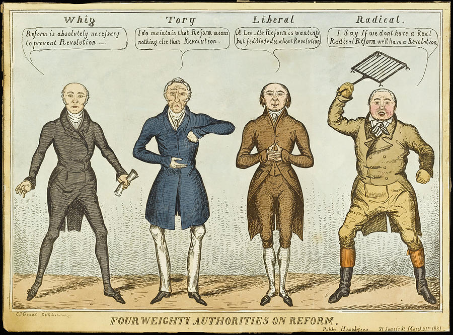 Виги были сторонниками ограничения королевской прерогативы и расширения, усиления прав парламента. На протяжении 1-й трети 19 века виги находились в оппозиции. К власти они пришли в период нарастания борьбы общества за изменение системы представительства в парламенте.