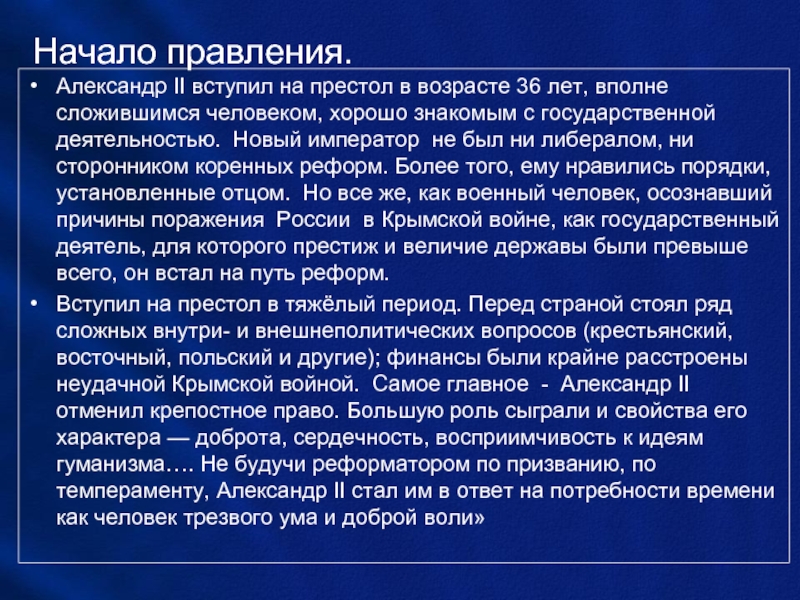 Такая же изменчивость и непоследовательность, равно как и отсутствие всяких прогрессивных демократических взглядов, проявились с самого начала его правления и во внутренней политике. Если посмотреть трезвым взглядом, то становится понятно, что никакого стремления к ослаблению положения самодержавия, равно как и мыслей о либерализации общественной жизни, он не высказывал.
