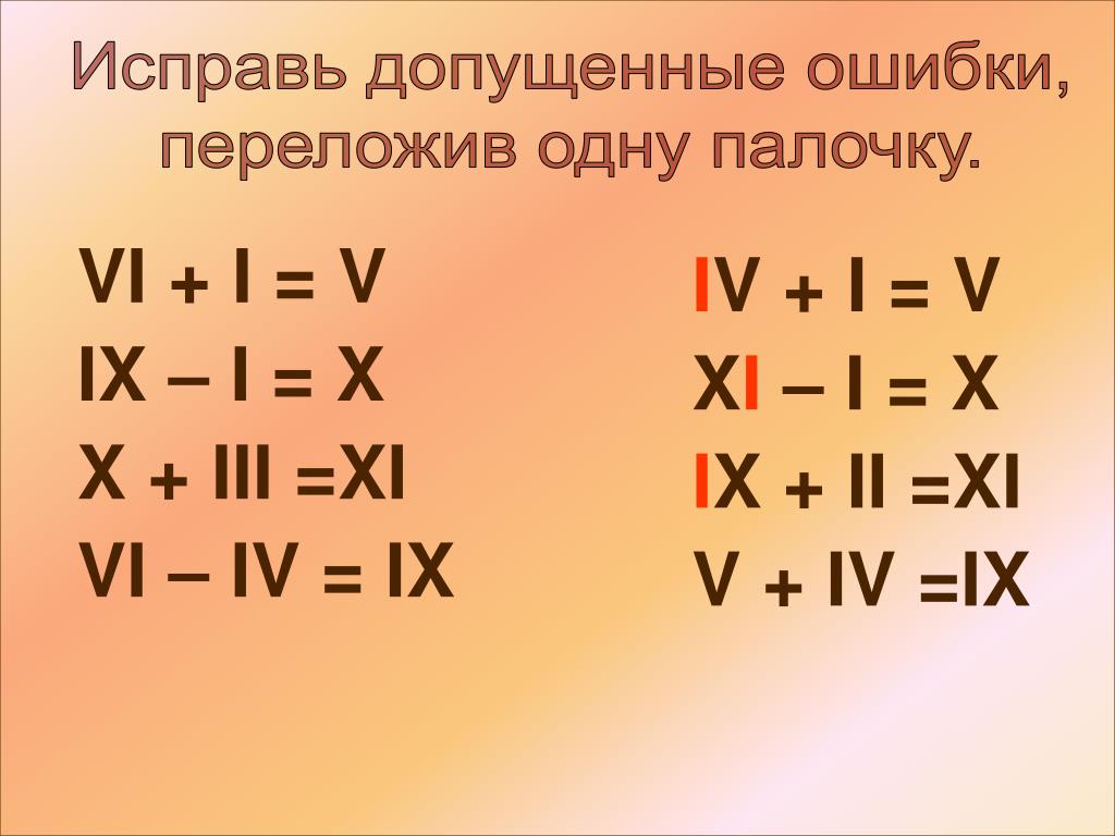 Получается, что лишь 5 римских цифр имеют индивидуальное начертание, остальные получаются при помощи подставления I. Если I стоит перед основной цифрой – это означает минус 1, если после, то плюс 1.