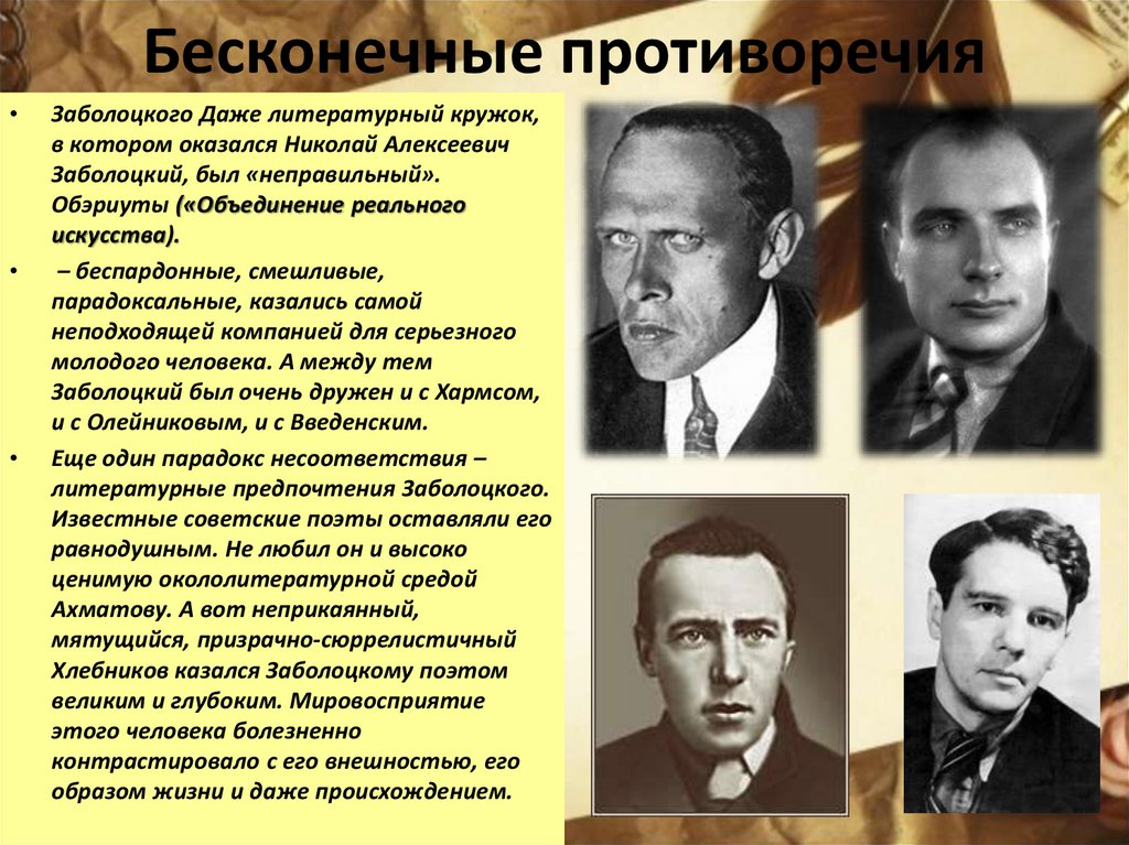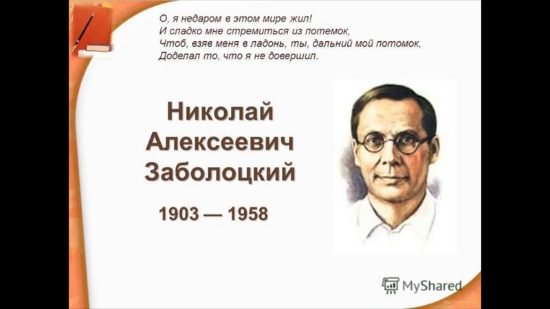 Николай Заболоцкий является ярким представителем русской поэзии. В ранних работах поэта можно наблюдать идеи футуризма, но позднее автор находит свой неповторимый, индивидуальный стиль. Ироничные строки его стихов были пропитаны философским смыслом и глубокой пронзительной лирикой.