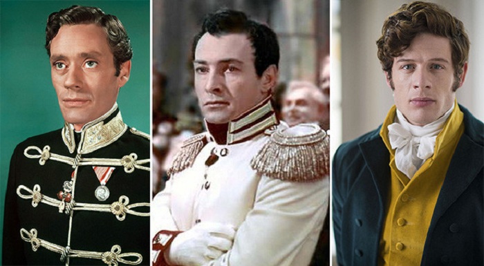 «…невысокого, очень красивого брюнета в белом мундире… это был Болконский, который показался ей очень помолодевшим, повеселевшим и похорошевшим…» (том 2 часть 3 глава XV)