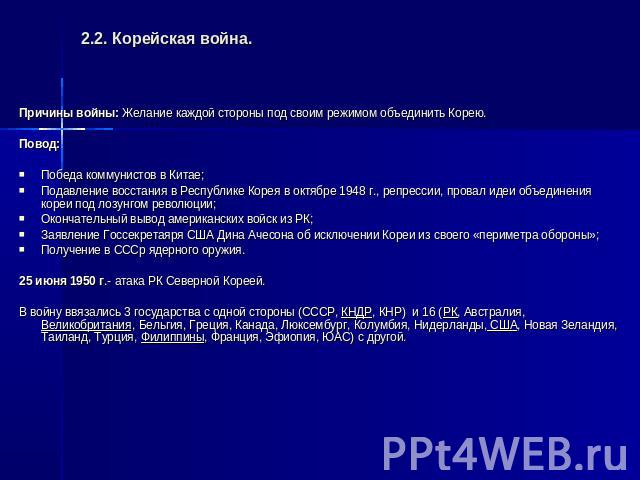 ПРИЧИНЫ ВОЙНЫ В КОРЕЙЕ