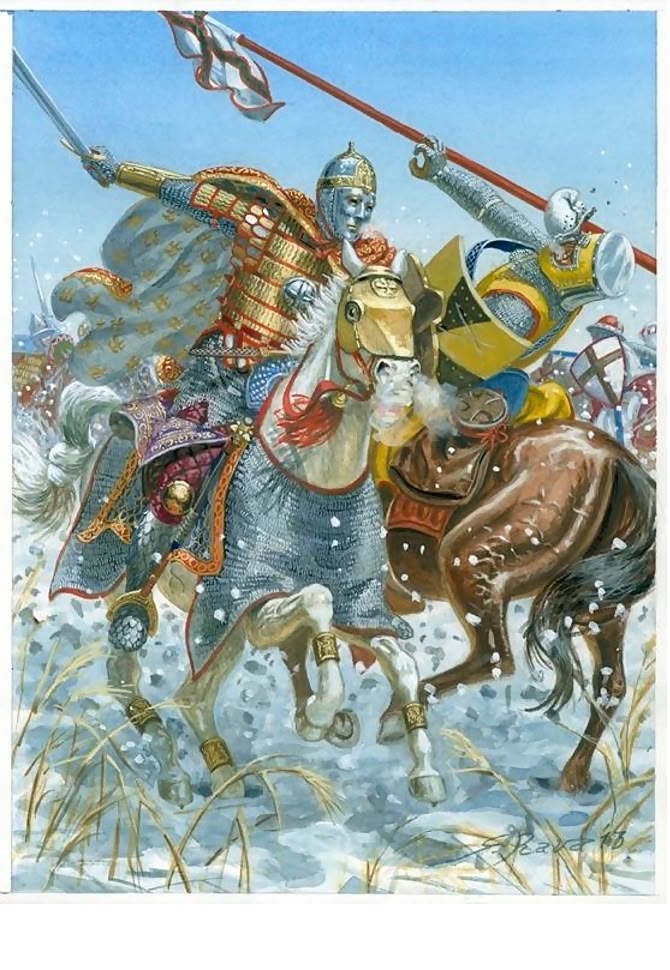 Явно в забег по льду и снегу даже с лёгким вооружением они вряд ли могли отправиться. Затем рыцарская конница увязла и мгновенно выдохлась, а остальной сброд уже не представлял серьёзной опасности для русских княжеских дружин, которые нанесли удар по флангам вражеского построения.