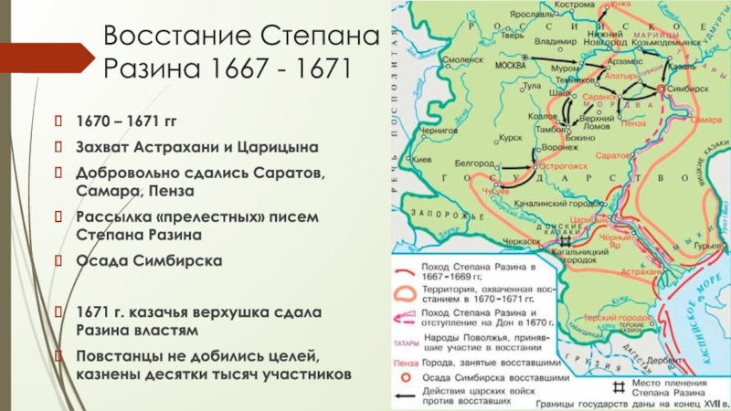 требований Степана Разина. Восстание Степана Разина (1670-1671). Причины. Среди захваченных повстанцами городов —