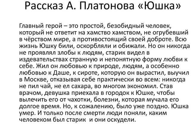 Анализ рассказа Юшка Платонова