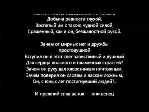 Смерть поэта (М.Ю. Лермонтов) Погиб поэт! — невольник чести, — Убит!.. К чему теперь рыданья, Что ж? Веселитесь… он мучений И что за диво?.. Издалёка, Заброшен к нам по воле рока. Смеясь, он дерзко презирал Земли чужой язык и нравы; Не мог щадить он нашей славы, Не мог понять в сей миг кровавый, На что он руку поднимал!.. И он убит — и взят могилой, Зачем от мирных нег и дружбы простодушной И, прежний сняв венок, — они венец терновый, С досадой тайною обманутых надежд. Замолкли звуки чудных песен, А вы, надменные потомки Но есть и божий суд, наперсники разврата! | The Bard is Dead! (tr. T. Beavitt) The bard is dead! – conscience of our age – Of one whose soul could not consent To yield to mean indignity, Who railed against this world and went Alone to face eternity! Eternity! Spare your crocodile tears… Well? Enjoy the show! He burned Occidental – quelle surprise! – The native customs of our land – Dismissed in terms derogatory; Ridiculed our national glory; Misconstrued this blood-soaked story; And with that he raised his hand!… And so he was slain, and his body taken, Why, from calm obscurity and artless geniality, Then, replacing with a crown of thorns, his wreath, Embittering his final days with stress And the subtle whispering of cretins… And so he died, with vain thoughts of redress: The intimate annoyance of mislaid expectations. ![]() The mellifluous tones of our tragic nation And you, O arrogant descendants, But there is a sacred court, O intimates of vice! Then in vain will you recall the time before the flood, With hearts already hard: For you will never wash away the blood, The righteous blood of the bard! |