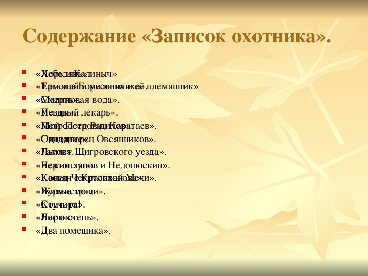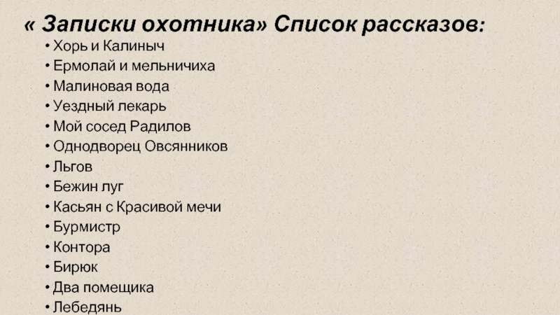 Иван Тургенев «Записки охотника — Уездный лекарь- ЖАНРЫ