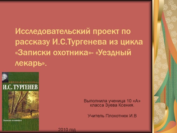Читательский дневник по рассказу «Уездный лекарь» (из цикла «Записки охотника») Тургенева