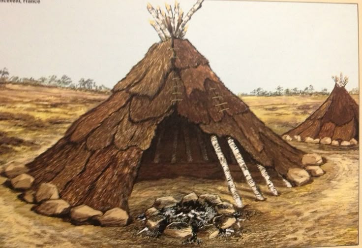 Возможно, доисторические жилища таких людей были похожи на вигвамы североамериканских индейцев и чумы жителей азиатского севера. Они представляли собой хижины из жердей, покрытых шкурами животных. Такое жилище можно было легко поставить и быстро разобрать. Внутри вигвама или чума разводили огонь.
