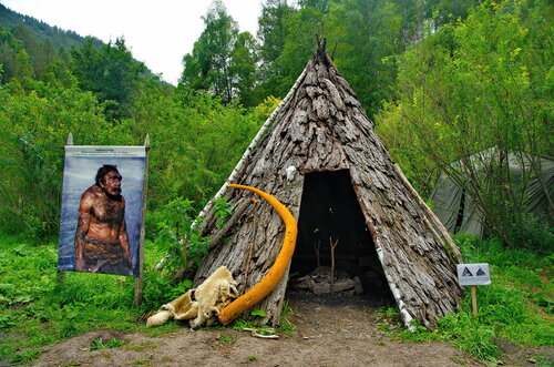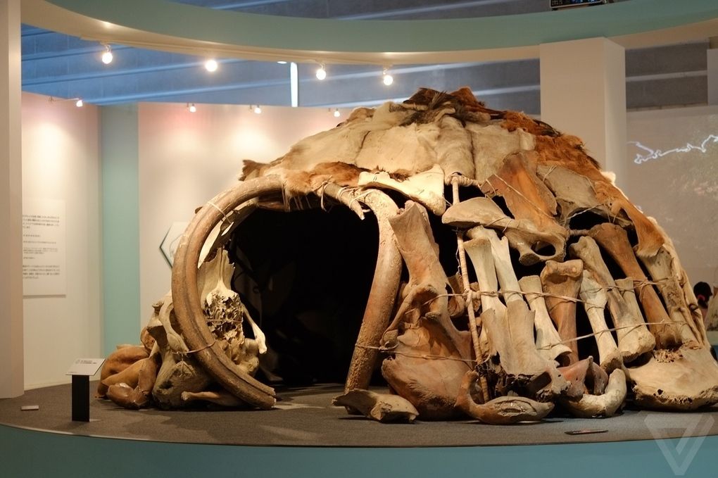 Жилище из костей мамонта. Так, возможно, выглядело древнее жилище. Основу его составляет каркас из веток деревьев и жердей, которые обкладывались костями крупных животных. Зазоры между костями заполнялись мхом и ветками кустарников. Затем вся конструкция покрывалась дёрном и шкурами. Такое жилище можно было разобрать и перенести на другое место.