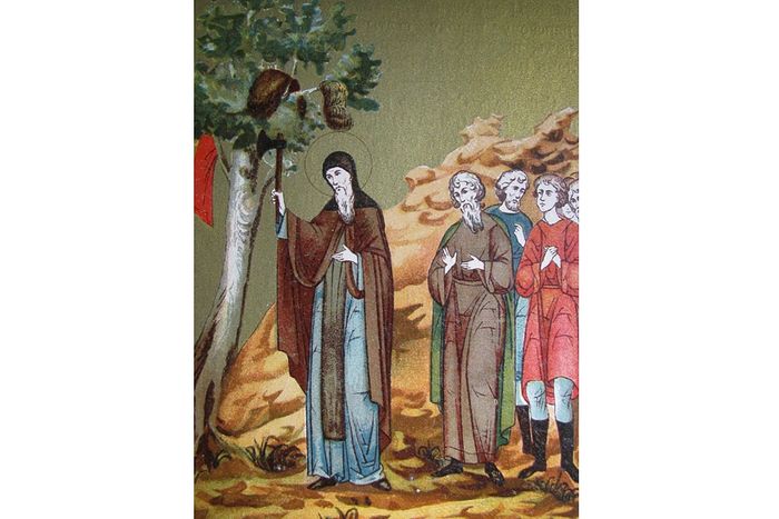 Преподобный Сергий, обедавший с братией, встал, помолился и, поклонившись в сторону, куда ехал святой, ответил: «Радуйся и тебе, пастырь стада Христова, мир Бог с тобой!»