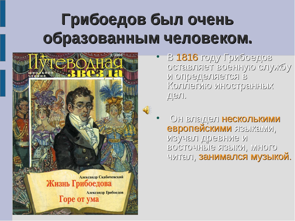 АЛЕКСАНДР ГРИБОЕДОВ – ПОЭТ, ДИПЛОМАТ И ГЕНИЙ ТРАГИЧЕСКОЙ СУДЬБЫ. МУЛЬТИМЕДИА