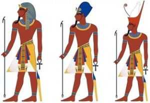 Первым фараоном, согласно верованиям египтян был сам бог Ра. За ним были другие боги. Позже появился сын Осириса и Исиды, бог Хор. Хор считался прообразом всех египетских фараонов, а фараоны его земным воплощением. Каждый реальный фараон считался потомком и Ра и Хора.