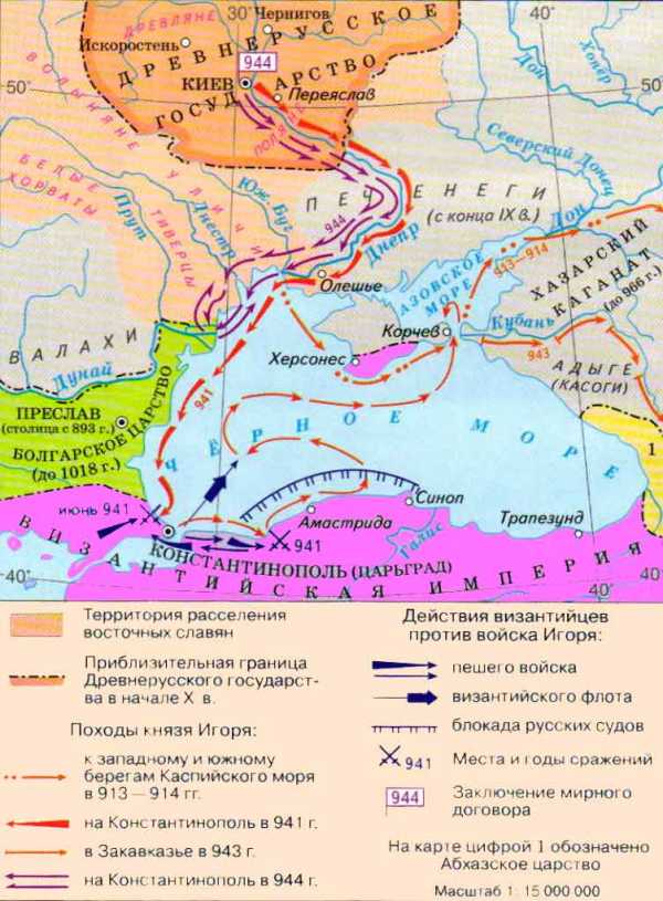 Пришла в византийскую столицу Константинополь грозная весть из Корсуня (греческого города на Таврическом полуострове): «Идет Русь без числа: корабли их покрыли все море!..» За этой вестью последовала другая от болгар: «Идет Русь и печенеги с ними!»