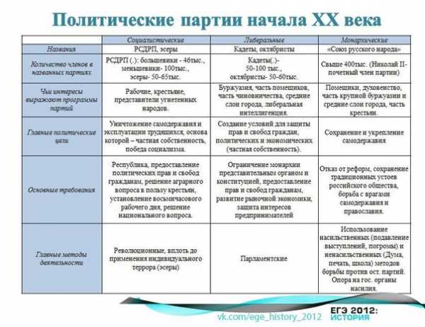 Политические партии в России в начале XX века (Таблица) |